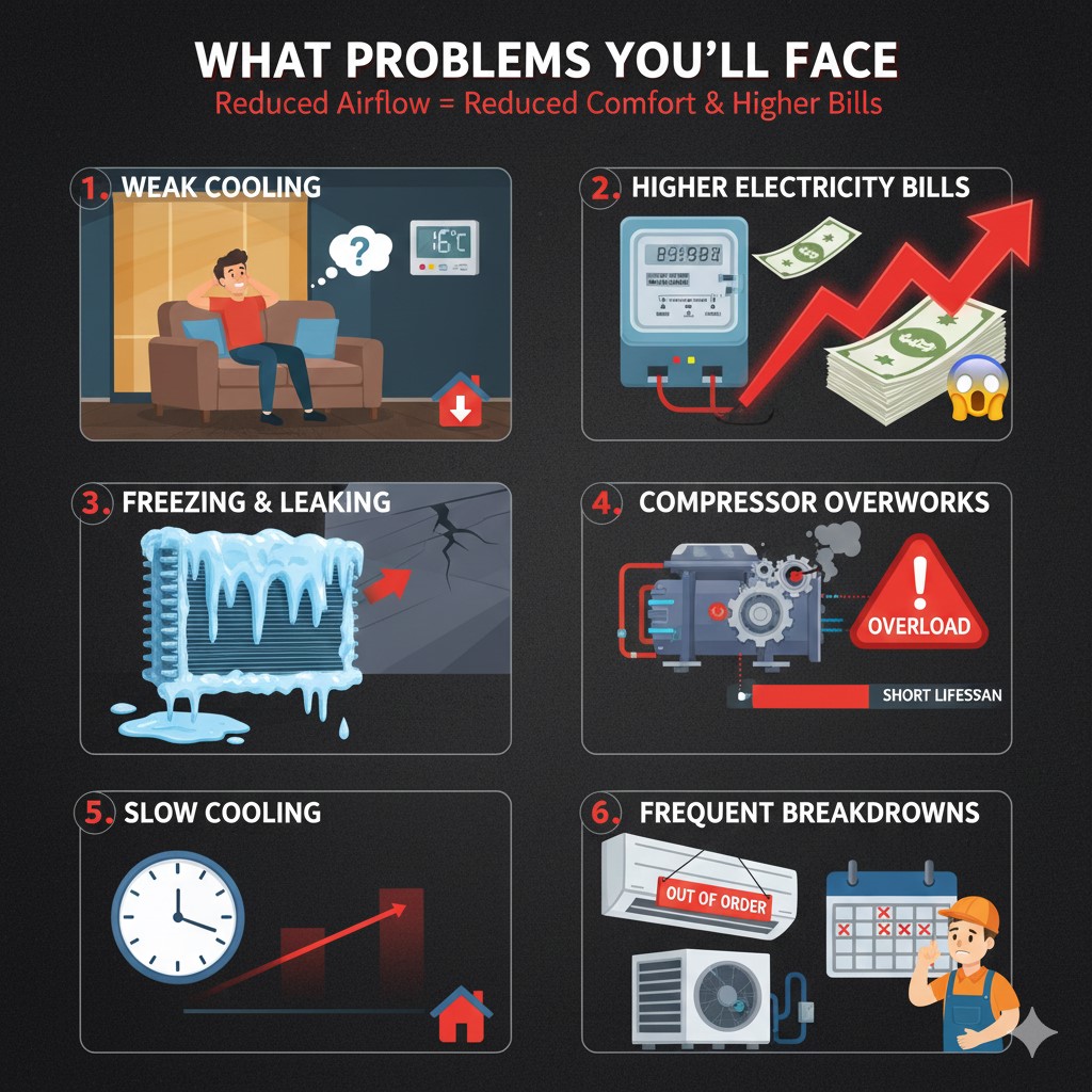 The consequences of bent cooling coil fins are far-reaching and directly impact your comfort, your wallet, and the longevity of your AC system:
