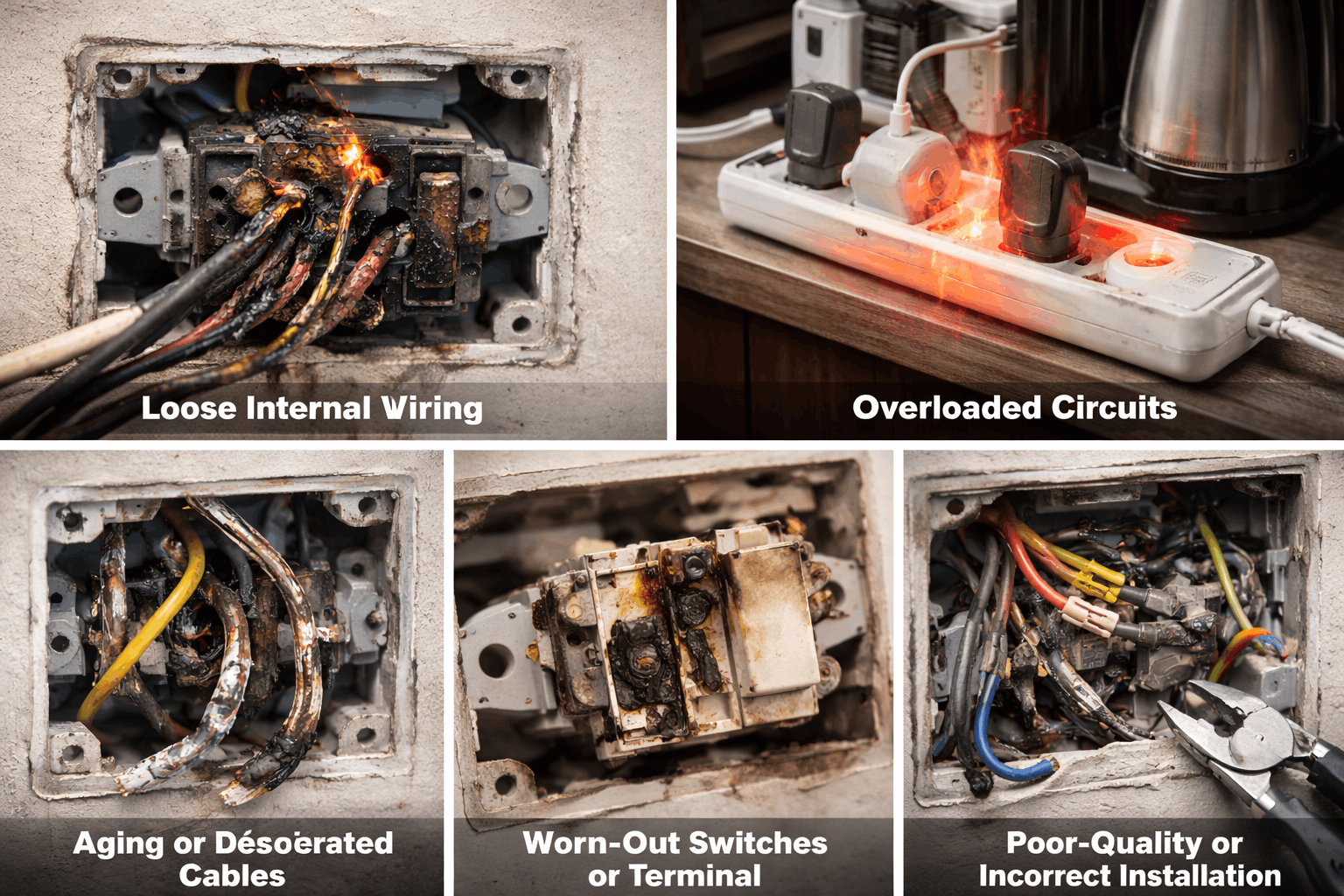 These are urgent electrical warning signs.
