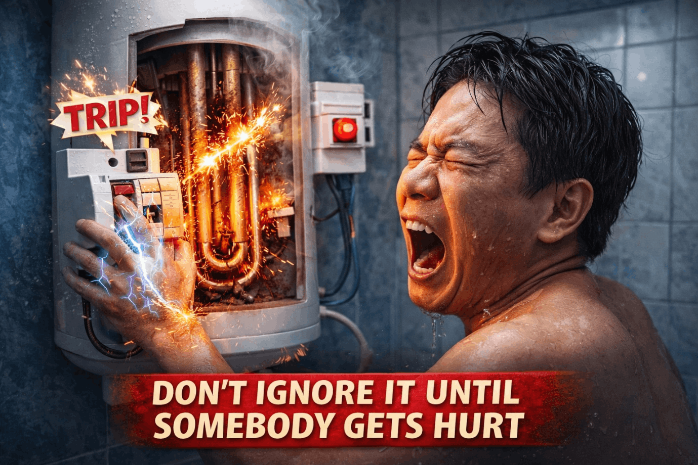 Once leakage exceeds safe limits, the ELCB / breaker trips immediately to protect you.