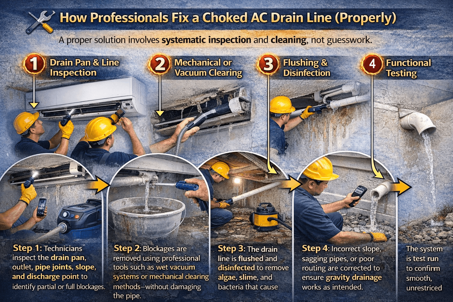 How Professionals Fix a Choked AC Drain Line (Properly)